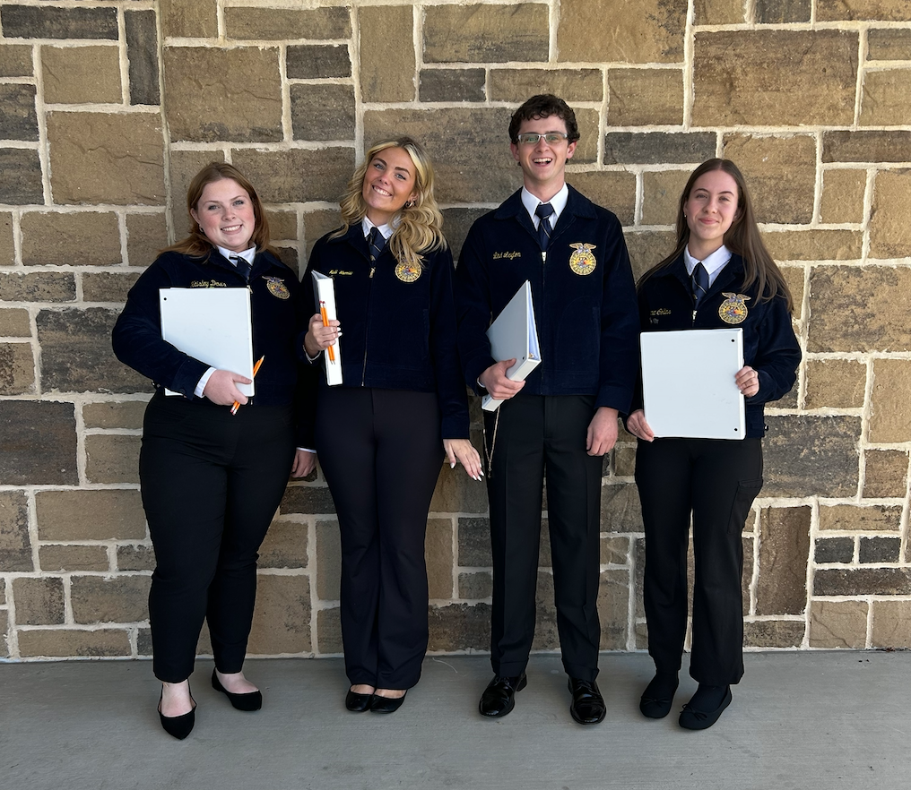 Pictured is Haisley Davis, Kali Merrill, Levi Layton and Lena Collins. Central High School FFA students won big in Area 1 competitions this week. The