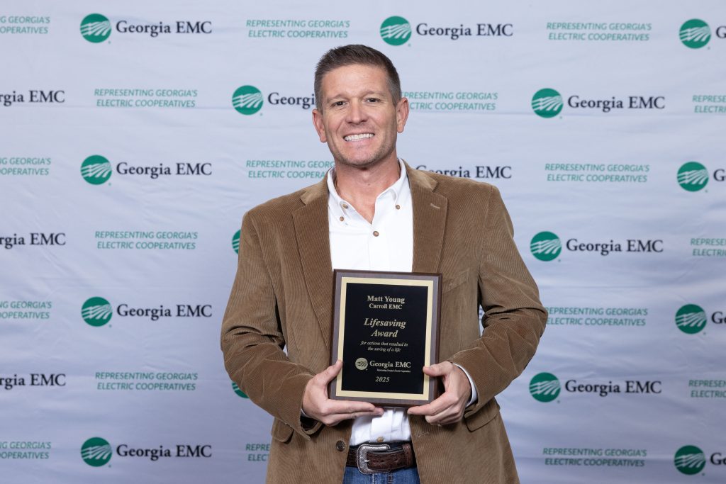 In recognition of his life-saving efforts, Matt Young, Manager of Safety, Training and Loss Control at Carroll EMC, was honored with a Lifesaving Award by Georgia EMC during the state association’s annual meeting on November 10 in Savannah.