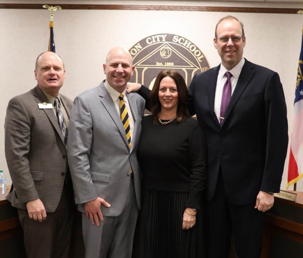 Pictured from left are CCS Superintendent Dr. Mark Albertus, Mr. David Godwin (Chairman/At Large), Mrs. Katie Williams (Ward Two), and Dr. Jason Mount (Ward Three).