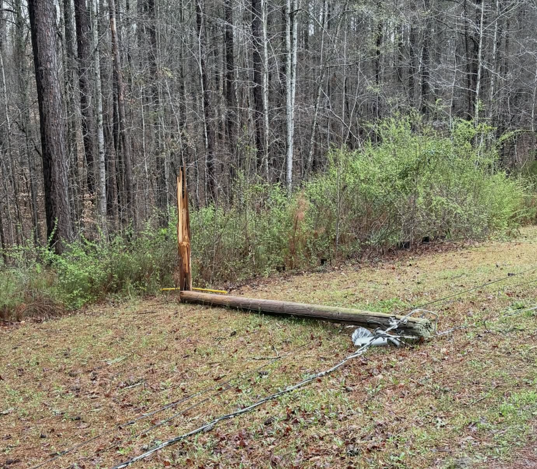 A strong line of storms moved through Carroll EMC’s service territory early Monday morning, March 16, 2026, causing widespread outages across the system. The storms