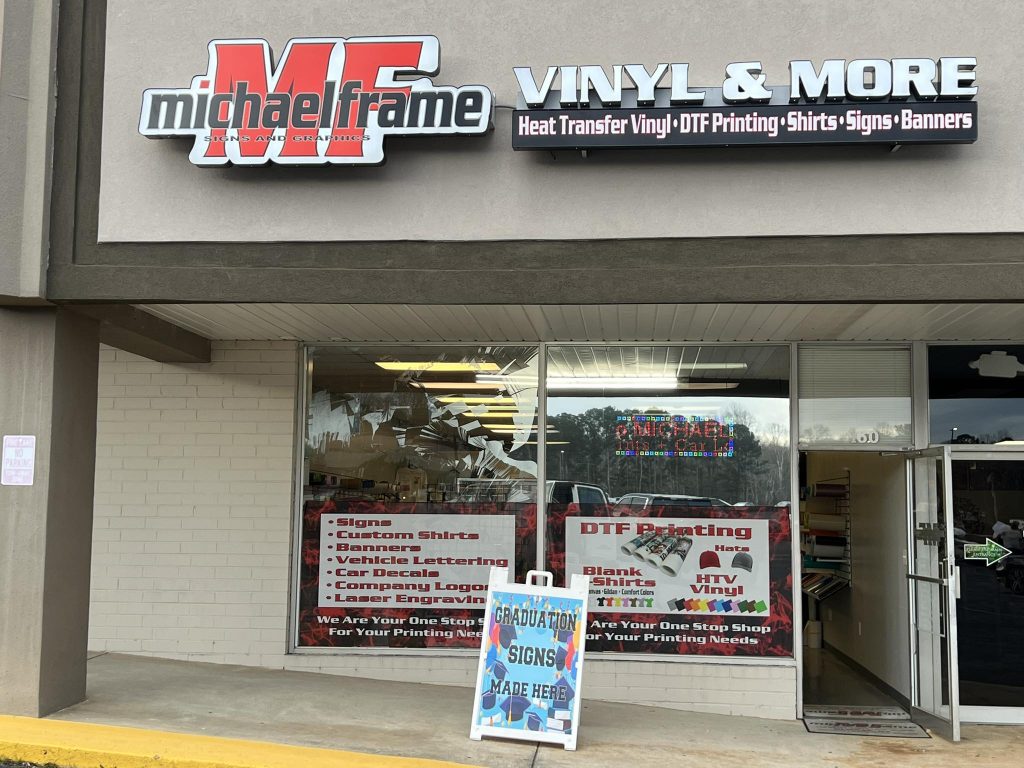 Michael Frame Designs/Signs and Graphics has been serving the community since 2014, providing custom printing and graphic services for businesses, organizations, and individuals. The move brings the shop to a more visible and convenient location on Bullsboro Drive, making it even easier for customers to stop in and work with the team on their projects.