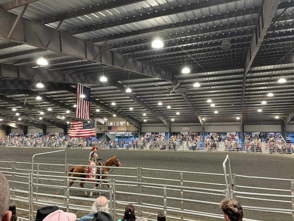 Gates open at 6:00 PM each night, followed by live music from 6:00 to 7:30 PM. Friday night will feature Rayley Montana, while Saturday will showcase the Country Outlaw Band. Rodeo events begin at 8:00 PM.