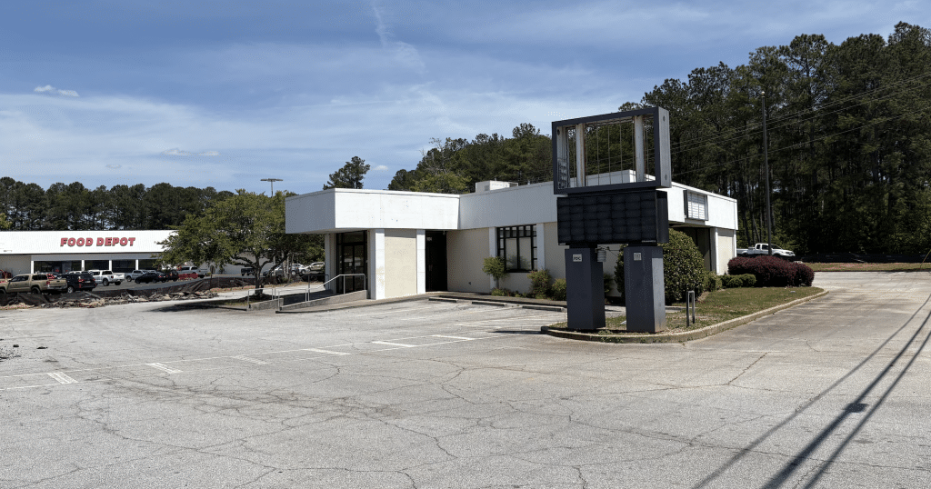 The bank building had been under contract for some time and has now sold to a buyer planning to redevelop the site. A construction fence has gone up in recent days as activity begins. It remains unclear whether the existing building will be repurposed or demolished, but the property will likely require underground fuel tank installation and a major overhaul.